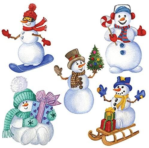 Christmas snowmen decal pack contains 5 watercolor snowman vinyl decals. Each decal is die cut and perfect for gifts, stocking stuffers, mason jars and more. The sticker sheet measures approximately 5.5″ square. Each snowman measures a little over 2.5″ tall. Made by a Veteran owned family operated business in the USA. All of our decals are made with high quality 3M vinyl with comply permanent adhesive.